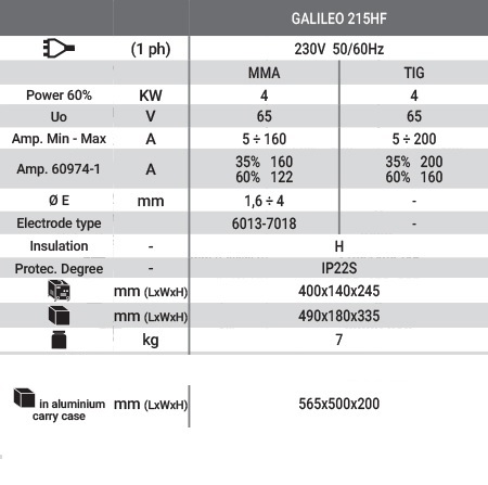 Generatori inverter studiati per soddisfare le necessità degli utilizzatori più esigenti. Facili da usare sia per la saldatura ad elettrodo che per la saldatura TIG con innesco con HF, permettono la preimpostazione di tutti i parametri tipici di un ciclo di saldatura TIG come: modalità 2t, 4t , pre-gas, rampa di salita, frequenza di pulsazione, corrente di base, rampa di discesa, corrente di crater filler e post gas) e della saldatura ad elettrodo come: Hot start e Arc force.Sono dotati di amperometro digitale per la visualizzazione della corrente di saldatura e la preimpostazione di tutti i parametri.